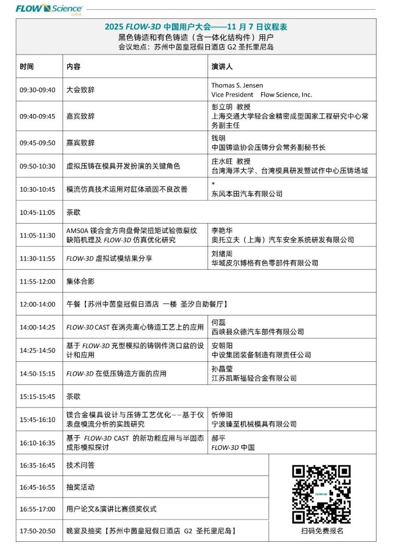 歡迎報(bào)名 | 2025 FLOW-3D CAST中國(guó)用戶大會(huì)議程公布